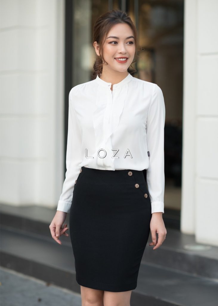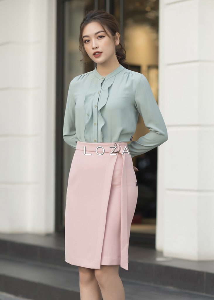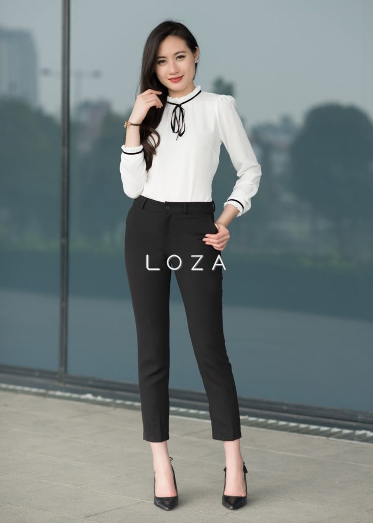 Loza giới thiệu mẫu thiết kế hot nhất đang làm mưa làm gió trên thị trường hiện nay. Mẫu thiết kế gồm quần tây tối màu và áo sơ mi phối kiểu.